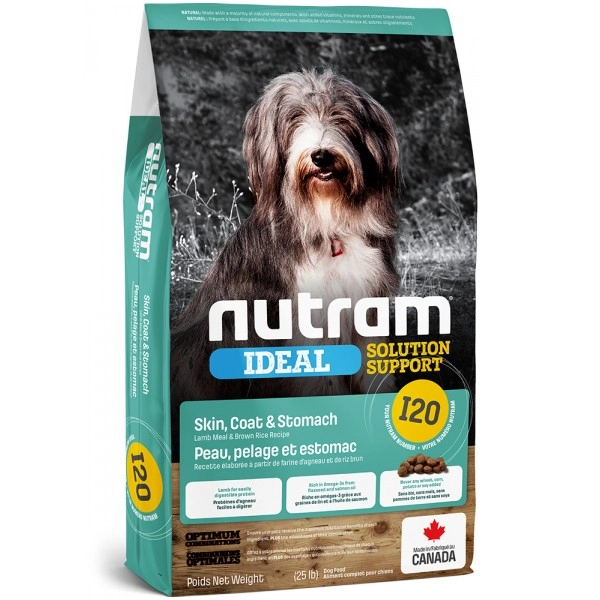 I20 Nutram Ideal Sensitive Skin Coat Stomach Dog je kompletné kanadské krmivo pre psov s citlivým zažívaním, kožnými problémami či vysokými nárokmi na výživu . Hypoalergenní receptúra s jahňacím mäsom je veľmi dobre stráviteľná, nedráždi trávenie a nespôsobuje alergické reakcie. 100 % prírodné - zásadne bez použitia chémie.