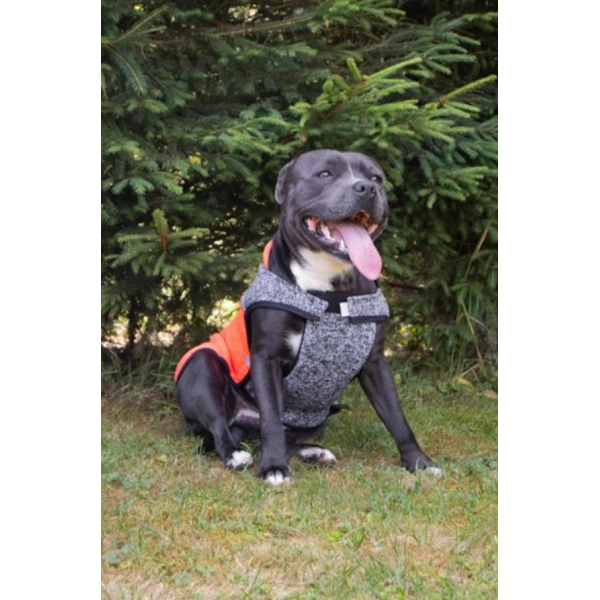 Hrejivý sveter pre psa Frankie XL od českej značky Samohýl Exclusive z kvalitnej úpletoviny s mäkkou flanelflísovou podšívkou psíka príjemne zahreje aj v najväčších mrazoch bez dažďa. Strih oblečku neobmedzuje v pohybe, chráni všetky dôležité partie, a vďaka pružnému lemu na okrajoch a gumičkám na zadné nohy a chvostík výborne drží na tele psa, nepodfukuje a neuniká spod neho teplo. Dvojmiestne zapínanie na suchý zips uľahčí nasadzovanie a prispôsobenie oblečku psiemu telíčku. Obvod okolo krku nastavíte obojstranným zapínaním pod krkom. Okolo bruška upevníte obleček zapnutím brušného dielu zľava aj sprava pomocou suchých zipsov na bokoch oblečku.