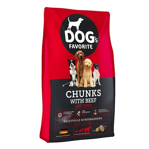 Kompletné krmivo pre dospelé psy Dog´s Favorit s chutným hovädzím mäsom. Výdatné granuly obsahujú kvalitné zložky, ako sú cenné omega-3 a omega-6 mastné kyseliny, ktoré podporujú lesklú a zdravú srsť. Receptúra neobsahuje pridaný cukor, umelé farbivá a konzervačné látky. Vyrobené v Nemecku.