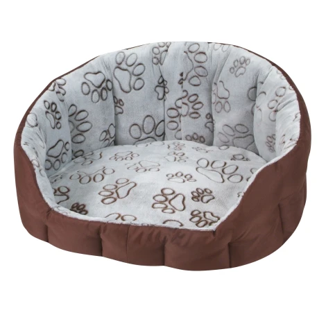 Casper Trendy je super pelech s vysokým okrajom a dvojfarebným otočným vankúšom. Hnedá vonkajšia látka je impregnovaná, vďaka tomu neprepustí vlhkosť do pelechu ani z neho. Vďaka impregnácii je tiež odolnejšia zašpineniu. Vnútorný materiál je hebký coral fleece, výplň je duté vlákno. Pelech sa teda nezľahne a náplň sa nebude praním cuckovat a premiestňovať.