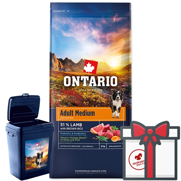 Ontario Adult Medium Lamb & Brown Rice je superprémiové krmivo pre dospelé psy stredných plemien s vysokým podielom kvalitného jahňacieho mäsa, hnedej ryže a funkčných zložiek. Optimálna výživa pre zdravé trávenie, kĺby, kožu a srsť. Bez zbytočnej chémie.