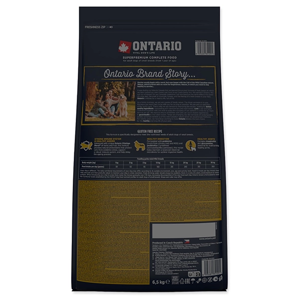 Ontario Adult Mini Fish & Brown Rice je superprémiové suché krmivo špeciálne vyvinuté pre dospelých psov malých plemien od 1 roka. Receptúra inšpirovaná divokou kanadskou krajinou s vysokým podielom čerstvých rybiek a prírodných zložiek, ako je hnedá ryža, ľanové semienko a bylinky, ponúka ideálnu kombináciu na podporu vitality a dlhodobého zdravia.