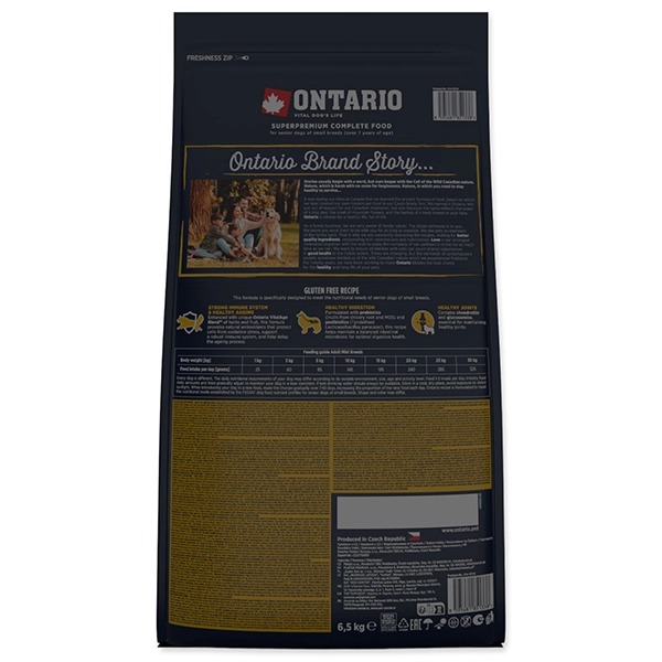 Ontario Senior Mini Fish & Brown Rice je superprémiové suché krmivo špeciálne vyvinuté pre staršie psy malých plemien od 7 rokov. Receptúra inšpirovaná divokou kanadskou prírodou s vysokým podielom čerstvého rybieho mäsa a prírodných zložiek, ako je hnedá ryža, ľanové semienko a bylinky, ponúka ideálnu kombináciu na podporu vitality a dlhodobého zdravia.