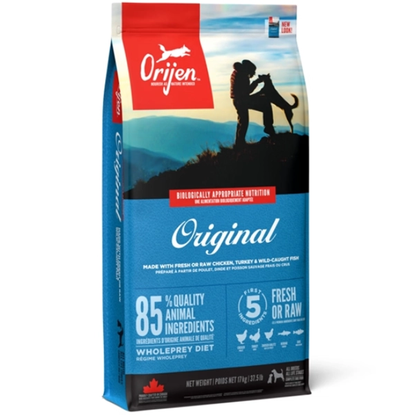 Orijen Dog Original je vhodný pre psy všetkých plemien a vekových kategórií. Obsahuje vysoký podiel bielkovín z voľne chovaných kurčiat, moriek, rýb a vajec z chovných fariem.