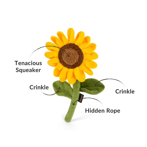 Interaktívna hračka pre psov P.L.A.Y. Slnečnica. Táto ekologická hračka vyrobená z recyklovaných pet fliaš zaujme na prvý pohľad! Hračka má skryté lano pre ešte väčšiu zábavu pri hre.