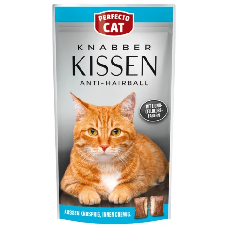 Zvonka hravo chrumkavé, vnútri lahodne krémové - prekvapenie, ktoré mačka objaví jediným sústom. Vyskúšajte plnené vankúšiky Perfecto Cat Anti Hairball a doprajte svojej mačke jedinečnú kombináciu chrumkavosti a mäkkej náplne.