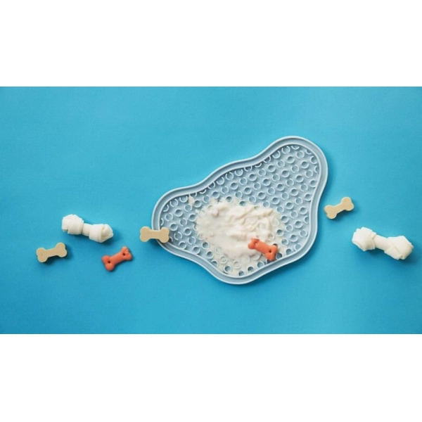 Miluje váš chlpatý priateľ jedlo a nevie si pomôcť? Chceli by ste sa vyhnúť problémom s nadúvaním, zvracaním alebo torziou žalúdka? Vyskúšajte originálny spôsob kŕmenia s podložkou na lízanie labiek Pet Dream House. Tento praktický pomocník poslúži najmä na upokojenie, zabavenie a spomalenie hltania vášho psa a mačky. Povrch podložky na lízanie je prispôsobený pre tekutejšie a lepkavejšie mňamky, ako sú paštéty, konzervy, vývary, jogurty a iné obľúbené mokré pochúťky a krmivá.