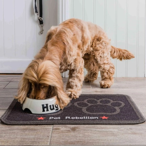 Luxusné umývateľné podložky Pet Rebellion. Pohodlný kobercový povrch spolu s protišmykovým povrchom zabraňuje posúvaniu misiek a umožňuje pohodlné kŕmenie. Štýlový a funkčný doplnok pre vášho psíka.