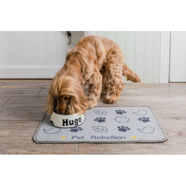 odstrániťLuxusné prateľné podložky Pet Rebellion. Pohodlný kobercový povrch spolu s protišmykovým povrchom zabraňuje posúvaniu misiek a umožňuje pohodlné kŕmenie. Štýlový a funkčný doplnok pre vášho psíka.