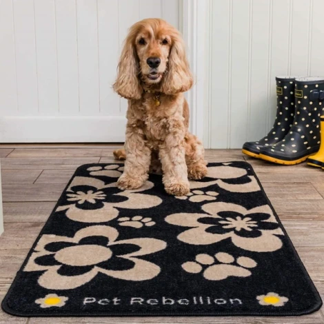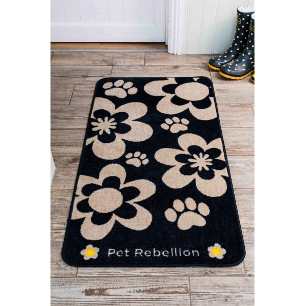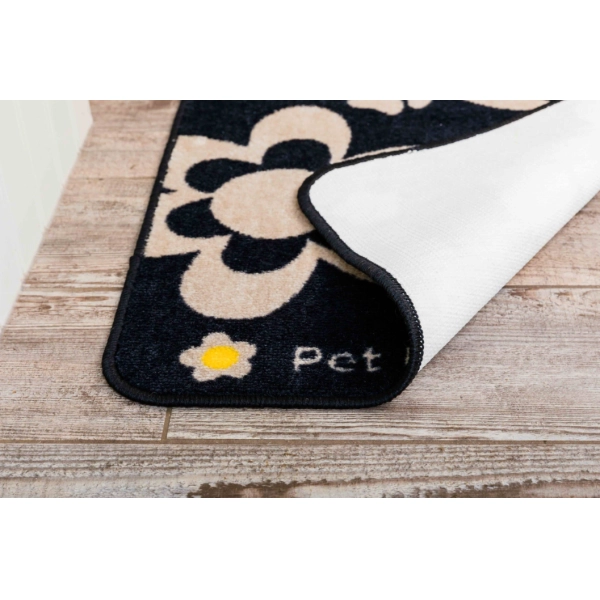 Nádherný kobercový behúň pre čisté labky vašich domácich miláčikov. Po prechádzke sú psie labky mokré, špinavé od blata, snehu alebo piesku. Ušetrite si starosti s umývaním s čiernym behúňom Pet Rebellion Flowers. Špeciálne navrhnutý povrch je dostatočne hrubý na čistenie labiek a zároveň veľmi pohodlný a mäkký. Stačí umiestniť behúň v dome pri vchodových dverách a máte hotovo. Behúň má odolnú protišmykovú vrstvu, ktorá zabráni kĺzaniu behúňa po podlahe a zároveň udrží všetku vlhkosť v behúni. Skvele zachytáva omrvinky alebo blato z labiek či topánok. Vďaka tomu zostane podlaha naozaj čistá.