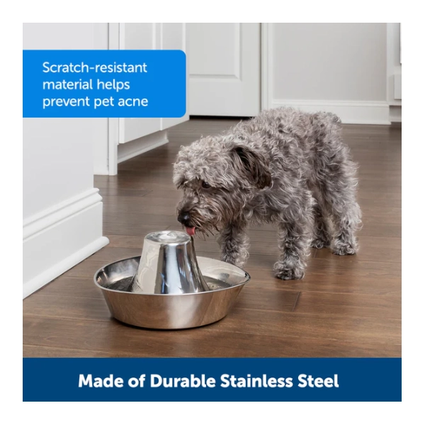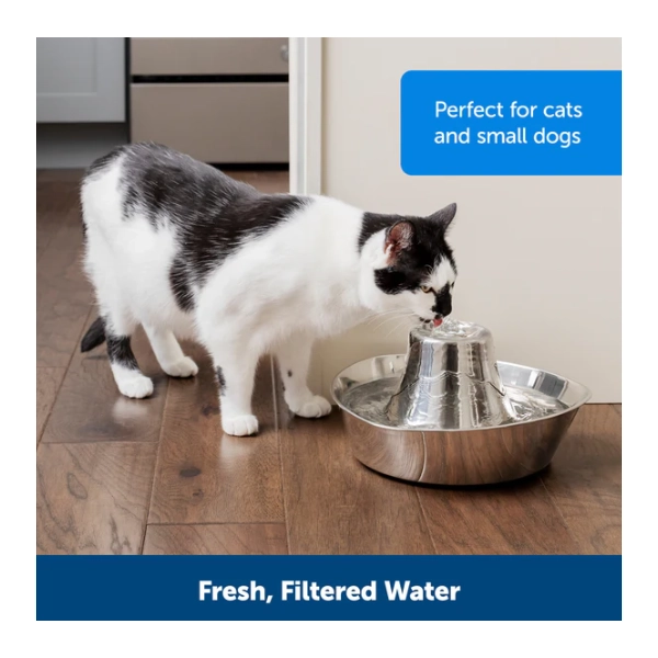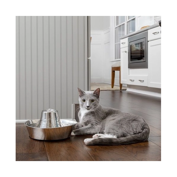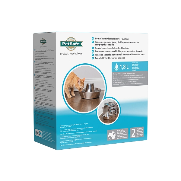 Fontána PetSafe Seaside z nehrdzavejúcej ocele pre malé psy a mačky dokonale zapadne do každej domácnosti a je vhodná aj do menších priestorov. Prúdiaca voda prirodzene láka domáce zvieratá a povzbudzuje ich k väčším dúškam. Fontána podporí správnu hydratáciu a pomôže predchádzať ochoreniam močových ciest a obličiek. Vysokokvalitný nerezový materiál fontány PetSafe Seaside je hygienický a odolný voči poškriabaniu a hrdzi.