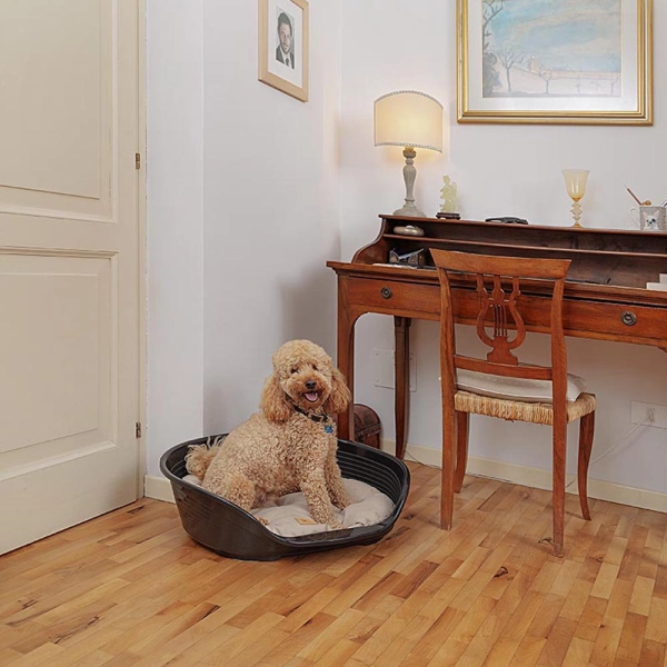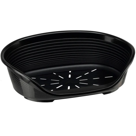 Útulný plastový pelech Ferplast pre psov. Má vysoký okraj so zaobleným lemom, protišmykové gumové pätky a dierované dno, ktoré umožňuje cirkuláciu vzduchu. Siestu môžete doplniť komfortným prateľným poťahom.
