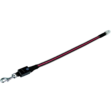 Praktické svietiace predĺženie pre vodítka Flexi Vario S/M. Pomocou pracky sa ľahko zacvakne na lanko/pásik vodítka, na opačnom konci je kovová karabína pre pripnutie psa. Väčšinu dĺžka predĺženia tvorí svietiaci pásik na nylonovom popruhu.