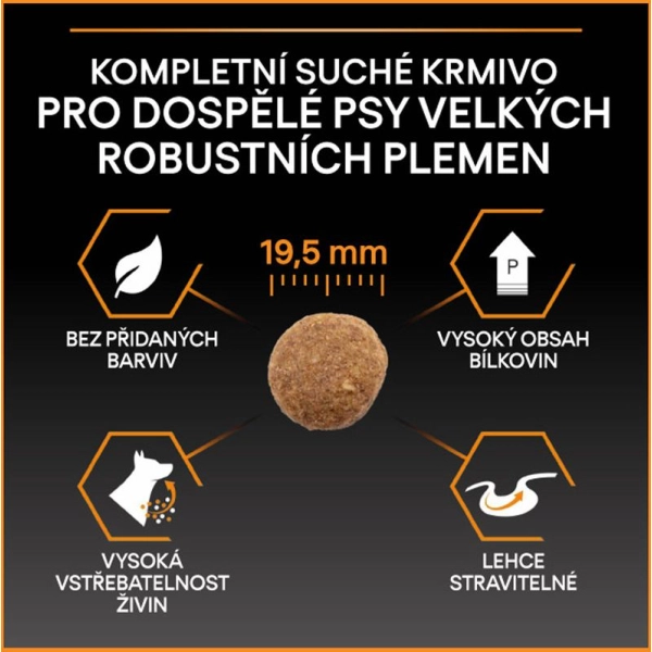 AKCIA: Zľava 15% s kódom PROPLAN15SK do 30.11.2025. Kompletné krmivo pre dospelých psov veľkých plemien s robustnou stavbou tela dopraje vášmu miláčikovi všetko, čo k zdravému životu potrebuje. Granule s kvalitným kuracím zaistia ideálnu telesnú kondíciu, silné svaly, zdravé kĺby a každodennú spokojnosť.