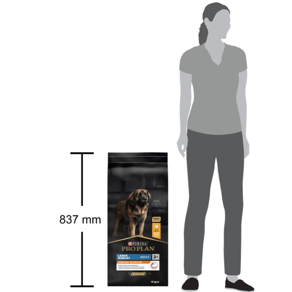 Pro Plan Large Adult Robust je kompletné krmivo s kúskami kvalitného kuracieho pre dospelých psov veľkých plemien s robustnou stavbou tela (s hmotnosťou nad 25 kg). Zloženie granúl Everyday Nutrition dopraje vášmu miláčikovi všetko, čo k spokojnému a zdravému životu potrebuje. Receptúra obsahuje vysoký podiel bielkovín pre ideálnu telesnú kondíciu a silné svaly, pomáha udržovať zdravé kĺby a lesklú srsť. Vitamín D, minerálne látky a omega-3 mastné kyseliny prispievajú k zdraviu zubov a ďasien. Vyvážený pomer živín podporuje perfektné vstrebávanie všetkých nutričných látok a prispieva tak k celkovému zdraviu a každodennej pohode vášho psíka.