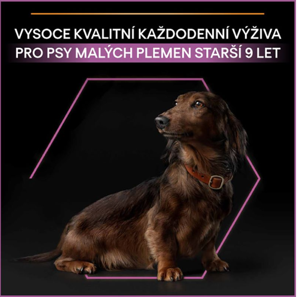 Pro Plan Small & Mini Adult 9+ Age Defence je kompletné krmivo s kvalitnými kúskami kuracieho, špeciálne vyvinutého pre potreby starších psov malých a trpasličích plemien (s hmotnosťou do 10 kg). Unikátna receptúra s optimálnym pomerom bielkovín a tukov pomáha psíkom udržať skvelú kondíciu a vitalitu aj v staršom veku. Špeciálna kombinácia živín pomáha bojovať so starnutím organizmu tým, že podporuje mentálne zdravie psa, jeho prirodzenú zvedavosť, chuť do hry a schopnosť reagovať. Rastlinné oleje zlepšujú pozornosť a bystrosť, glukosamín a omega-3 mastné kyseliny podporujú pohyblivosť kĺbov a omega-6 mastné kyseliny spoločne s vitamínom A udržujú zdravú kožu a lesklú srsť. Vyvážený pomer minerálov a vitamín D prispievajú k zdraviu zubov a ďasien. Doprajte vášmu psíkovi spokojný a zdravý vek s krmivom Pro Plan.