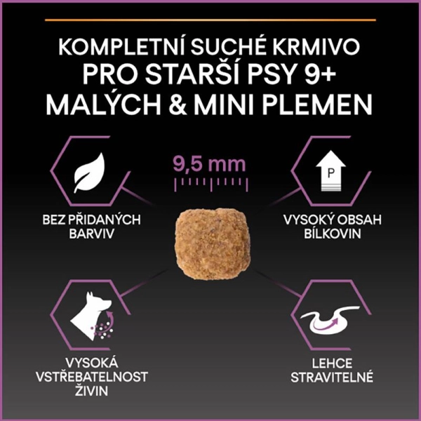 Kompletné krmivo pre psy malých a trpasličích plemien starších ako 9 rokov pre zdravé starnutie. Jedinečná kombinácia živín napomáha udržať život vašich maznáčikov čo najdlhšie aktívnych, podporuje prirodzenú zvedavosť a záujem o hru, stará sa o kĺby a udržuje kondíciu.