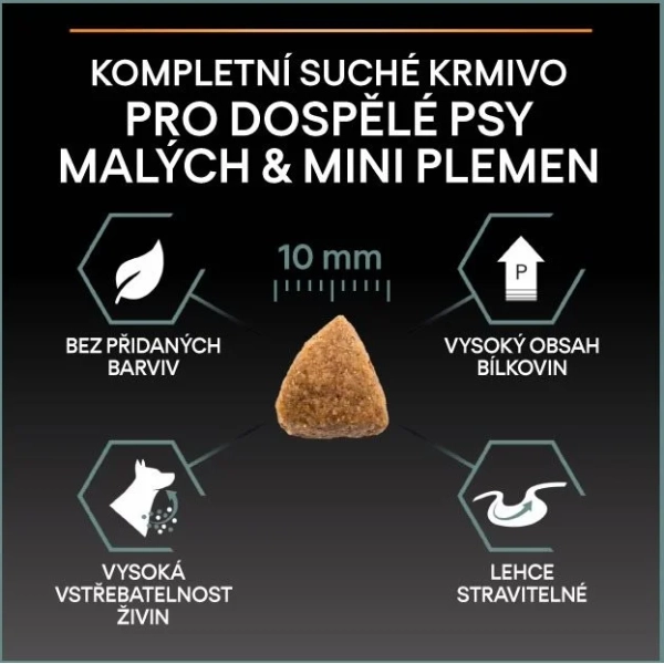 Pro Plan Small & Mini Adult Sensitive Digestion s kúskami kvalitného jahňacieho je kompletné krmivo pre dospelé psy malých a trpasličích plemien (s hmotnosťou pod 10 kg), ktoré majú citlivé zažívanie. Jednotlivé zložky obsiahnuté v krmive sú vysoko stráviteľné, uľahčujú proces trávenia a nedráždia tráviaci trakt. Vysoký obsah bielkovín je doplnený o prebiotiká, ktoré zvyšujú množstvo prospešných bifidobaktérií a tým zlepšujú rovnováhu črevnej mikroflóry, bentonit (prírodný íl) pre zdravé vyprázdňovanie, vitamín D a minerálne látky pre silné a zdravé zuby. Krmivo radu Sensitive Digestion zaistí skvelú kondíciu, každodenné zdravie a pohodu vášho psa.