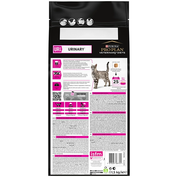 Pre Plan VD Feline UR St/Ox Urinary je kompletné diétne krmivo pre dospelé mačky trpiace na struvitové alebo oxalátové močové kamene. Vhodné aj pre nutričný manažment mačiek s ochorením dolného močového ústrojenstva.