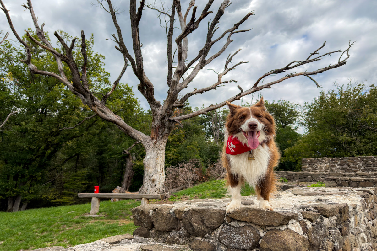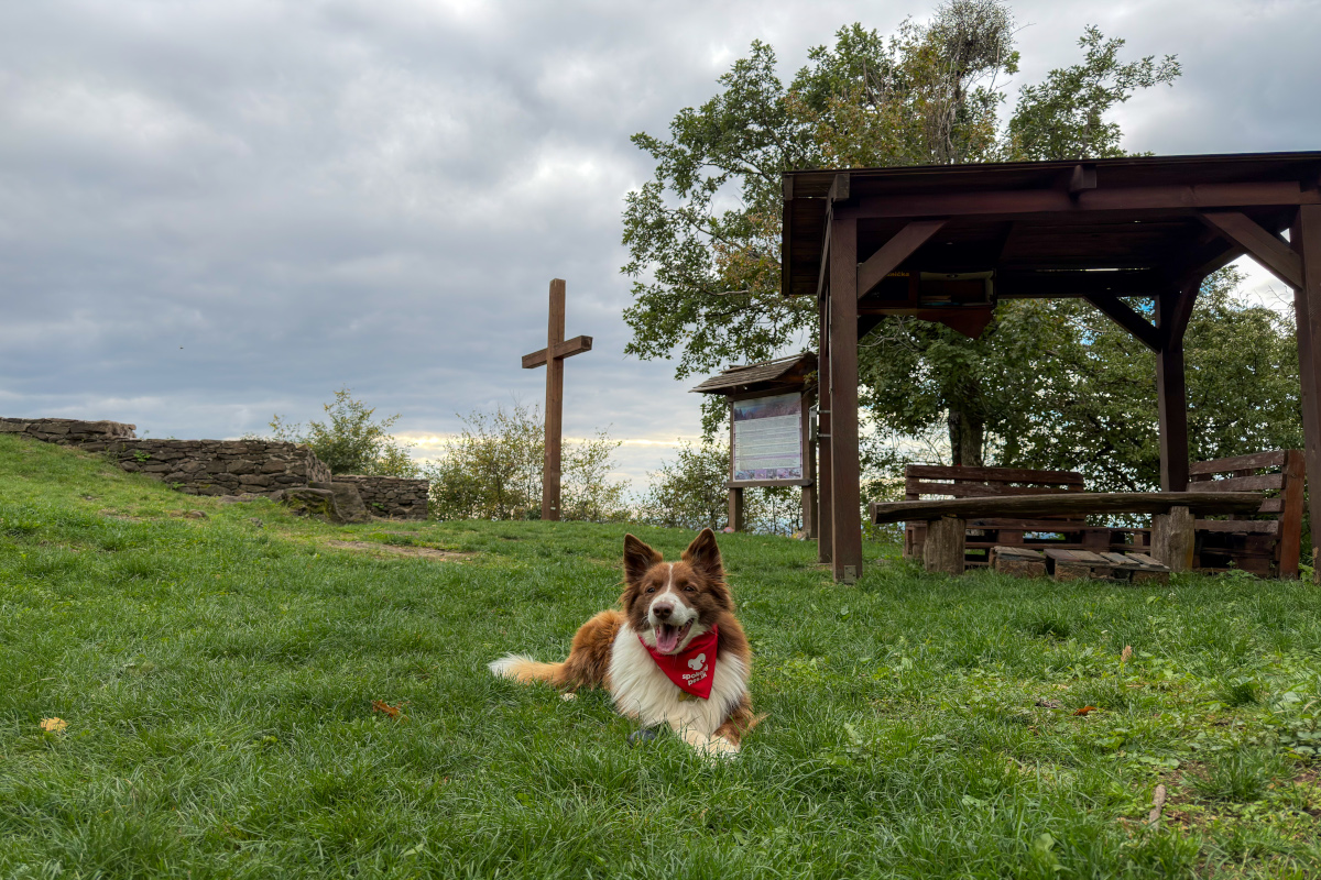 Naša dnešná psotulka však nemierila priamo k vode, ale o kúsok vyššie – ku krásnemu kostolíku pod Senderovom. Toto miesto sa nachádza len pár minút jazdy od brehu Šíravy a ponúka nádherný výhľad na celé jazero. Kostolík je pozostatkom pôvodného obyvateľstva zatopenej dedinky Hôrka, ktorá musela ustúpiť výstavbe priehrady. Dnes tu stojí len malý biely kostolík obklopený viničom a zeleňou – pokojné miesto s kúzelnou atmosférou. K psokladu sa dostaneš ľahko – od parkoviska pri ceste vedie krátky chodník až ku kostolíku, takže je to vhodné aj pre menšie psíky.