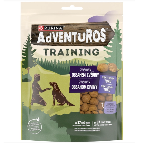 Tréningové pochúťky pre psov Purina Adventuros sú chrumkavé a chutné maškrty so zverinou, ktoré sa vďaka svojej malej veľkosti dajú použiť pri učení nových trikov, v kurzoch poslušnosti alebo ako odmena na prechádzke. Ľahká a vzdušná štruktúra dobrôt je podobná granulám a je ideálna pre psov, ktorí uprednostňujú chrumkavejšie odmeny. Radosť bude hneď o chlp väčšia. Sú vhodné pre chlpatých priateľov všetkých veľkostí.
