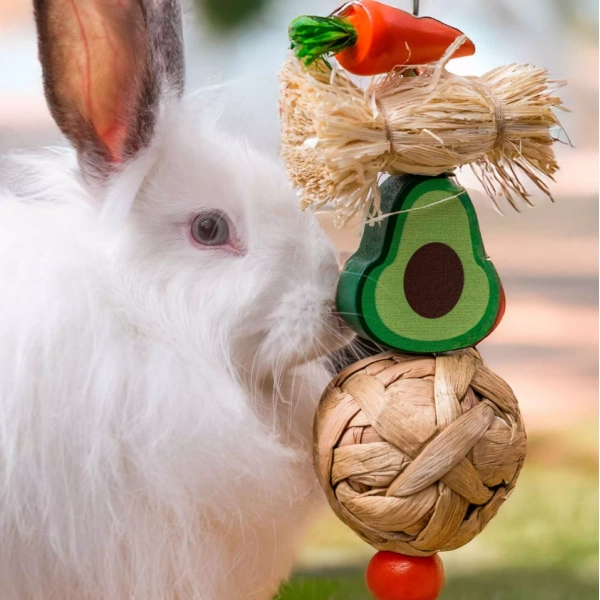 odstrániťZávesná hračka Quapas! Avokádo pre králiky a hlodavce môže nielen podporiť zdravé obrusovanie zubov, ale aj spoľahlivo zahnať nudu. Rôzne tvary a prírodné materiály prinesú vášmu chlpáčikovi radosť zo žuvania a zároveň pomôžu zabrániť nežiaducemu správaniu z nudy.