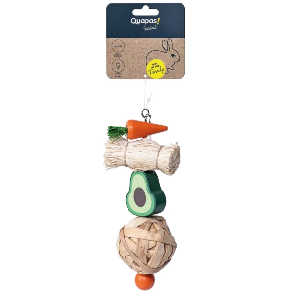 Závesné okusovadlo Quapas! Avokádo pre králiky a hlodavce, ktoré môžete ľahko zavesiť do klietky. Prírodné materiály a hravé tvary zaručujú veľa zábavy pri žuvaní a okusovaní, ktorá raz a navždy zaženie nudu.