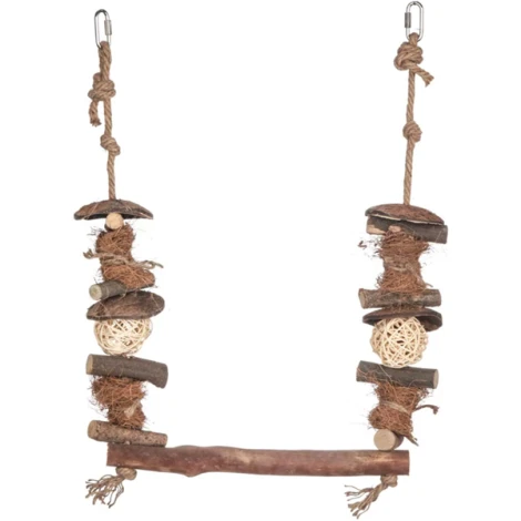 Quapas sa hojdá! Hojdačka pre vtáky z prírodných materiálov pre malé a stredné vtáky. Operence si vyskúšajú balansovanie, hojdacie vylomeniny alebo aj odpočinok na novom mieste. Skrátka čokoľvek, na čo bude mať náladu. Hojdačku možno ľahko zavesiť za háčiky v každej klietke alebo voliére.