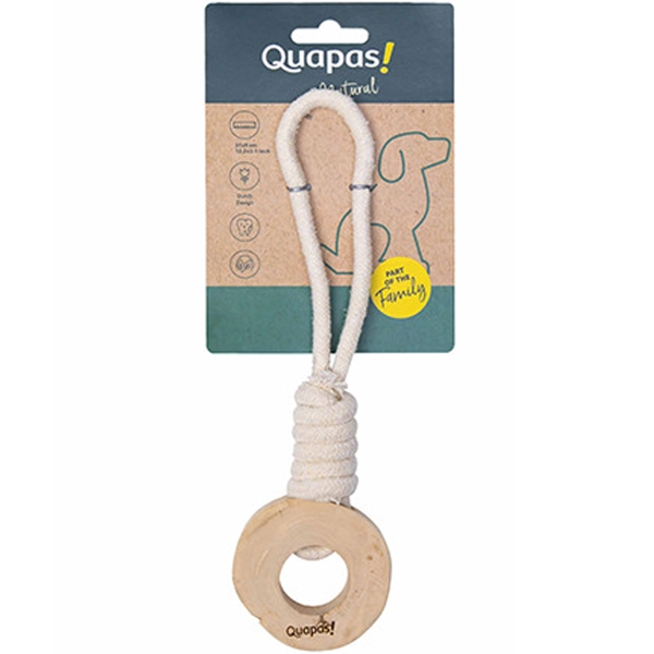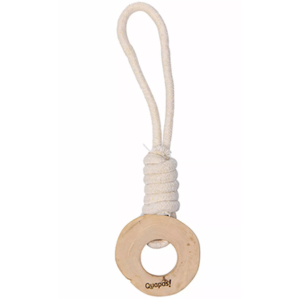 Kávová drevená hračka pre psov Quapas! Tyre. 100 % prírodné kávové drevo a bavlnené silné lano - skvelá kombinácia pre dlhotrvajúce potešenie zo žuvania. Kávové drevo je bezpečné na žuvanie a neobsahuje žiadne umelé prísady. Žuvanie a hryzenie kávového dreva podporuje čistotu zubov a zároveň pomáha znižovať stres a úzkosť. Ideálna voľba pre psov, ktorá vydrží dlhšie ako bežné hračky.