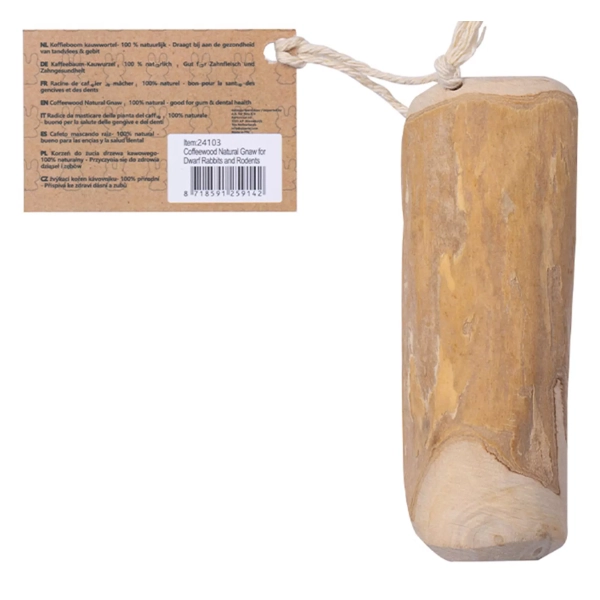 odstrániťAj najmenšie domáce zvieratá, ako králiky a hlodavce si teraz môžu užívať výhody kávového dreva! Kávové drevo Quapas! pochádza zo 100 % prírodného kávovníka. Hryzenie dreva podporuje prirodzené obrusovanie zubov. Nevytvára triesky. O zábavu bude postarané.