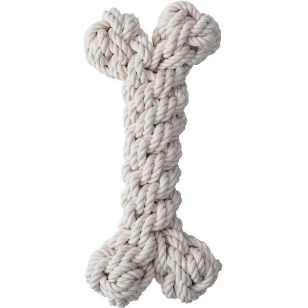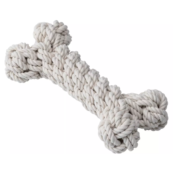 Lanová kosť Quapas! Bone na nekonečné chvíle preťahovania lanom, aportovania a veselého žuvania. Lanová hračka vyrobená zo 100 % prírodnej bavlny sa môže pochváliť grandióznymi rozmermi, pevnou konštrukciou a odolným dizajnom, ktorý prináša skvelú príležitosť posunúť dentálnu hygienu na vyššiu úroveň.