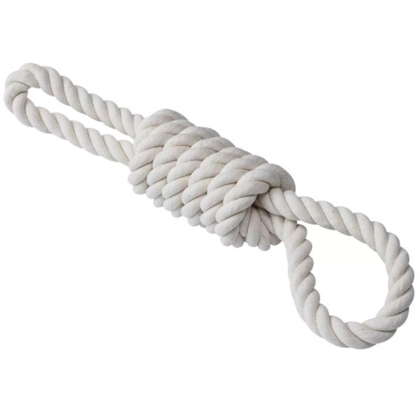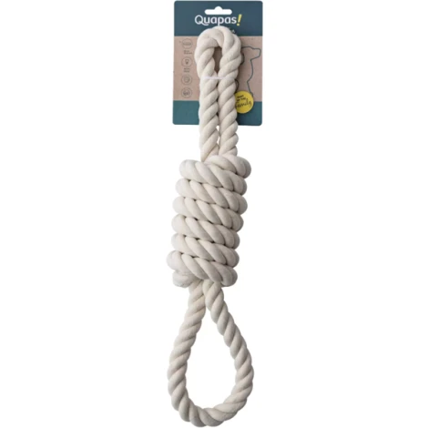 Lanový uzol Quapas! Šnúra na nekonečné chvíle preťahovania lanom, aportovania a veselého žutia. Hračka na lane vyrobená zo 100 % prírodnej bavlny sa môže pochváliť grandióznymi rozmermi, pevnou konštrukciou a odolným dizajnom, ktorý prináša skvelú príležitosť posunúť dentálnu hygienu na vyššiu úroveň.
