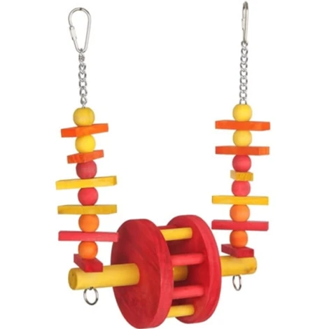 Visiaca farebná hojdačka Quapas! Rockys pre malé papagáje premení každú klietku na raj plný šplhania, balansovania a občasného okusovania. Jednotlivé drevené dieliky sa líšia tvarom, farbou a veľkosťou, takže ponúkajú veľa možností na skúmanie. A keď na spodné krúžky zavesíte ďalšie hračky, zábava nikdy nekončí! Vyrobené z materiálov bezpečných pre vtáky.