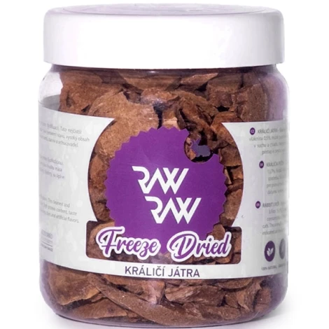 Raw Raw pochúťky pre psy a mačky - mrazom sušené mäso - najlepšie, najchutnejšie a najzdravšie pochúťky, aké môžete ponúknuť svojim domácim miláčikom. Tieto mäsové maškrty sa vyrábajú zo surového mäsa sušením mrazom (lyofilizáciou). Tento spôsob spracovania zachováva kvalitu mäsa v raw stave (zodpovedá surovej strave), vysoký obsah bielkovín, chuť a výživovú hodnotu. Pochúťky sú úplne bez glycerínu, konzervačných látok, farbív a aróm.