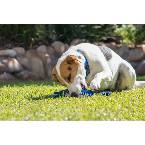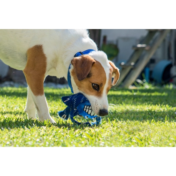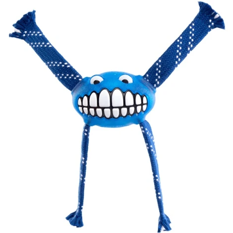 Chyťte ho, zatraste ním a uvidíte rodeo. Odolná pískacia hračka pre psov Rogz Flossy Grinz zaujme v každom ohľade. Vášho psíka poriadne naštartuje a pripraví na parádnu zábavu. Vďaka štyrom tkaným lanám sa hračka ľahko švihá, ľahko hádže a ešte lepšie ťahá. Gumový povrch je príjemný na hryzenie a bonusové priehlbiny pomáhajú čistiť zuby. Uvidíte, že váš pes sa bude usmievať takmer rovnako ako samotný Grinz.
