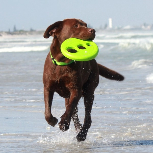 Veľmi ľahký lietajúci tanier vyrobený z kvalitnej a pevnej gumy, s ktorým si užijete veľa zábavy v parku a pri vode. Dobre pláva a nenasáva vodu, je dobre viditeľný na hladine. Vďaka aerodynamickému tvaru sa veľmi ľahko hádže a psovi sa pohodlne drží.