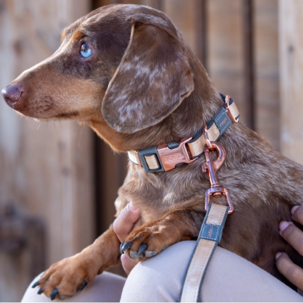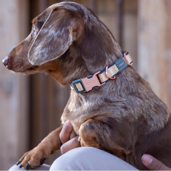 Obojok Urban Classic je vhodný na každodenné používanie. Elegantne spája funkčnosť a štýl. Obojok je vyrobený z kvalitného, pevne tkaného nylonu a mäkkého plyšu pre pohodlné nosenie. Kombinácia jemných pastelových farieb a ružovozlatých doplnkov robí z obojka nadčasový kúsok.