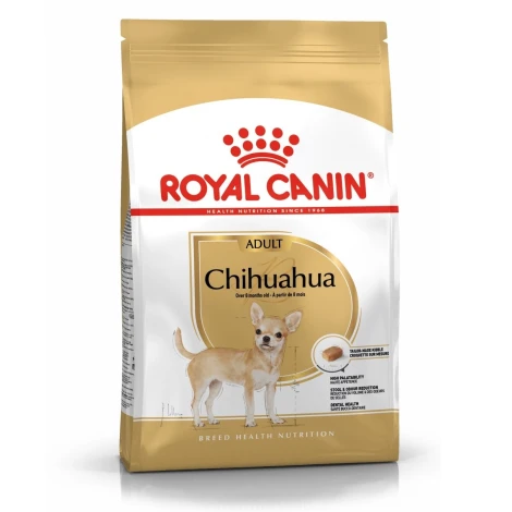 Kompletné krmivo Royal Canin pre dospelých čivavy. Receptúra je prispôsobená potrebám tohto plemena.