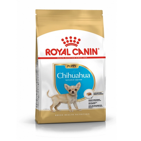 Kompletné krmivo Royal Canin pre šteňatá čivavy. Receptúra je prispôsobená potrebám tohto plemena vo veku 2 - 8 mesiacov.