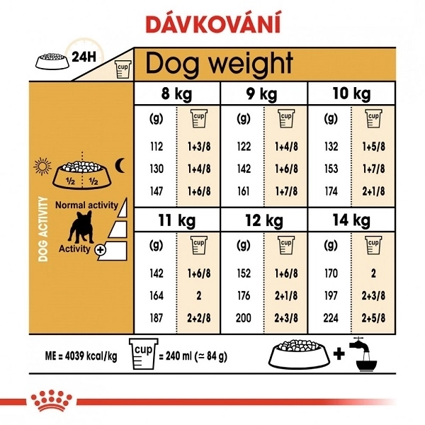 Royal Canin French Bulldog Adult je kompletné krmivo pre francúzske buldočky staršie ako 12 mesiacov. Výživa prispieva k efektívnemu zachovávaniu svalovej hmoty, preto granule obsahujú L-karnitín a optimálne množstvo bielkovín.