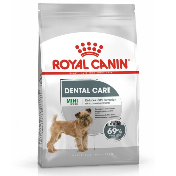 Royal Canin SHN Mini Dental je kompletné krmivo pre psov s hmotnosťou do 10 kg ve veku od 10 mesiacov. Receptúra a konzistencia je vhodná predovšetkým pre jedincov s problémovými zubami. Granulky fungujú pri hryzení ako zubná kefka.