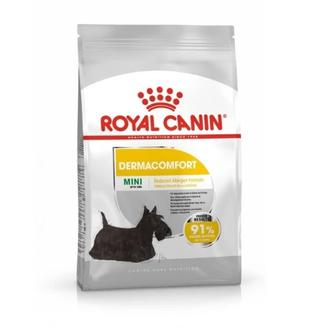 Royal Canin Mini Dermacomfort je kompletné granulované krmivo pre dospelé psy malých plemien. Zloženie so zníženým obsahom alergénov obmedzuje svrbenie a citlivosť kože.