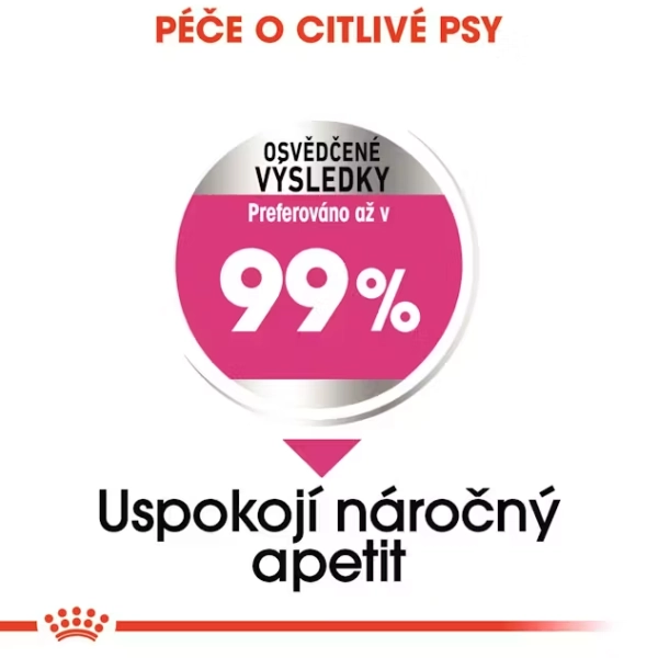 Royal Canin SHN Mini Exigent je krmivo pre malé a prieberčivé maškrtníkov. Granule majú tvar vankúšikov, chrumkavú konzistenciu a sú plnené aromatickou paštétou plnú živín. Teraz už nebude mať váš psík problém s nechutenstvom. Určené psom s hmotnosťou do 10 kg staršich 10 mesiacov.
