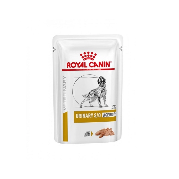 Kompletné diétne vlhké krmivo Royal Canin pre psov. Obsah látok podporujúcich kyslosť moču a nízky obsah horčíka ju robí vhodnou pre rozpúšťanie struvitových kameňov a pre zníženie rizika ich opätovného výskytu. Určené pre psov starších ako 7 rokov.