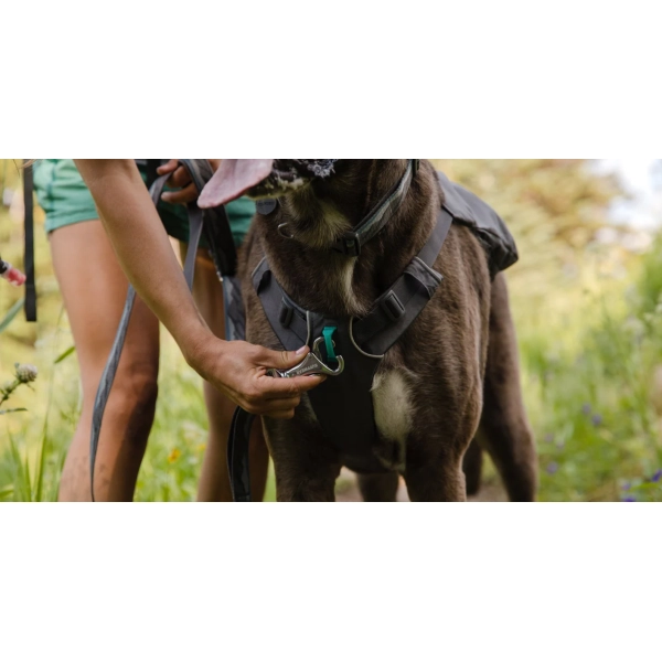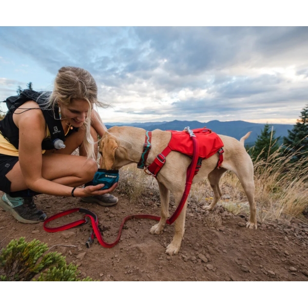 Dvojité upevnenie vodítka môže pridať trochu zdravého rozumu jedincom, ktorí na vodítku ťahajú. Predĺženú rukoväť využijete pri zdolávaní náročných úsekov alebo keď potrebujete psa držať pri sebe. A aby sa váš pes cítil ako skutočný člen výpravy, postroj Switchbak je vybavený aj dvoma vreckami, do ktorých sa dajú uložiť dôležité potreby, ako napríklad vlastná miska, vodítko, psie topánočky alebo dokonca malá desiata či skladná pláštenka. Uvidíte, že váš chlpatý priateľ ponesie svoju výbavu hrdo a nadšene, ku každému dobrodružstvu.