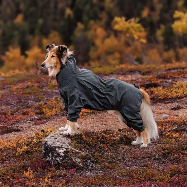 Rukka Flash Overall je pohodlná kombinéza, ktorá ochráni vášho chlpáča od hlavy až k labkám pred dažďom, vetrom aj špinou. Vďaka pružnému materiálu perfektne padne, neobmedzuje v pohybe a ľahko sa oblieka vďaka zipsu na chrbte. Nastaviteľný pás, golier aj nohavice zaistia, že obleček sadne ako uliaty a reflexné žíhovanie sa navyše postará o maximálnu bezpečnosť a skvelú viditeľnosť aj pri večerných prechádzkach.