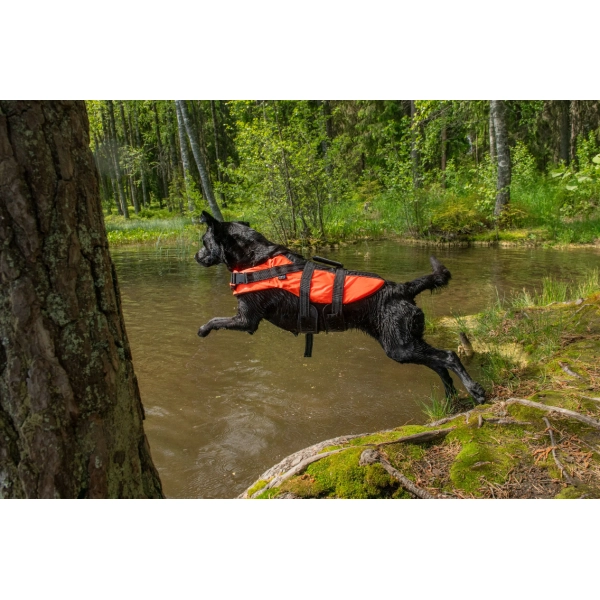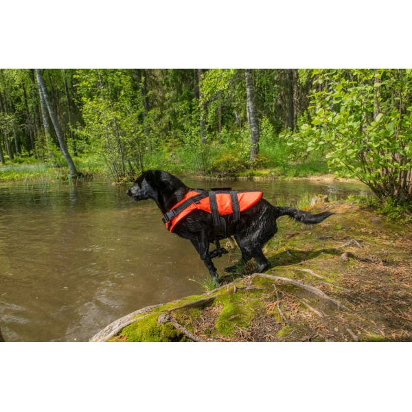 Záchranná plávacia vesta Safety Life Vest od fínskej značky Rukka pre skúsených plavcov i psíkov, ktorí potrebujú dodať trochu odvahy. Vďaka premysleným detailom a kvalitným materiálom vesta bezpečne drží na svojom mieste, uľahčuje psovi pohyb vo vode a nijako ho neobmedzuje. Vesta je vybavená reflexnými detailmi, plastovým krúžkom na pripnutie vodítka a pevným madlom na chrbte, ktoré uľahčí zdvíhanie psa z vody na loď alebo paddleboard.