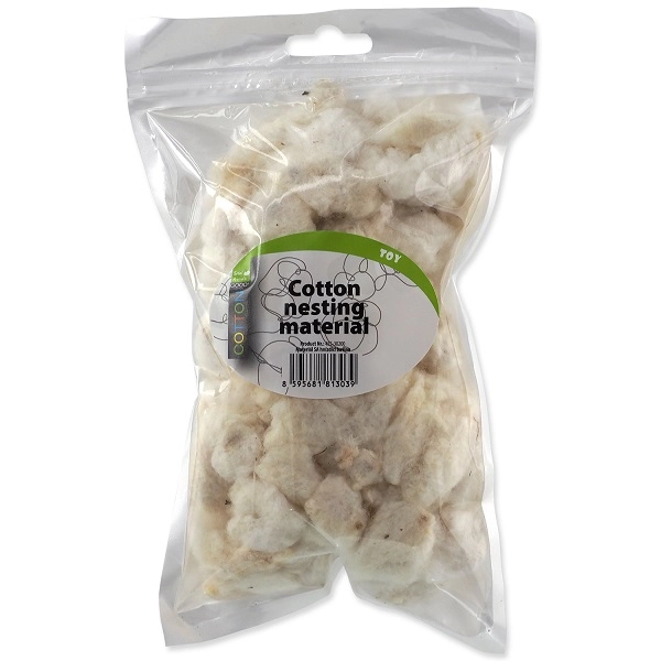 Small ANimal hniezdiaca bavlna pre malé zvieratá je vhodná najmä pre malé hlodavce, ale aj pre gravídne králiky. Hniezdny materiál sa používa na stavbu lôžok, úkrytov alebo hniezd pre mláďatá. Malé hlodavce vlákna rozpletú a vytvoria si tak pohodlné životné prostredie. Táto činnosť ich nielen zabaví, ale aj podporí ich prirodzenosť. Výrobok je vyrobený z bavlny a bavlnených listov, bez farbív.