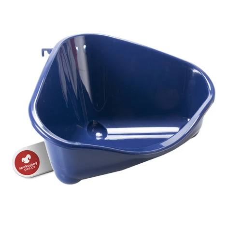 Veľká rohová toaleta pre hlodavce a králiky so zaobleným, vpredu zníženým okrajom. Možno prichytiť ku klietke alebo pripevniť pomocou prevlečeného drôtika. Toaleta sa ľahko čistí, a vďaka nej sa zvieratko naučí čistotnosti.