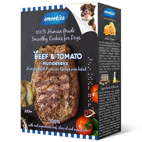 Smookies Premium sú ručne pečené sušienky s príchuťou hovädzieho mäsa. Za ich neodolateľnou chuťou a príjemnou vôňou sa skrývajú len starostlivo vybrané ingrediencie v kvalite určenej pre ľudí. Sušienky neobsahujú žiadne náhrady, žiadne skryté prísady ani vedľajšie produkty.